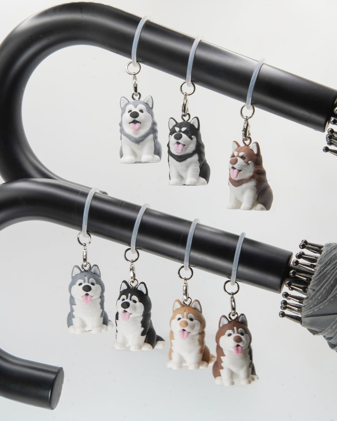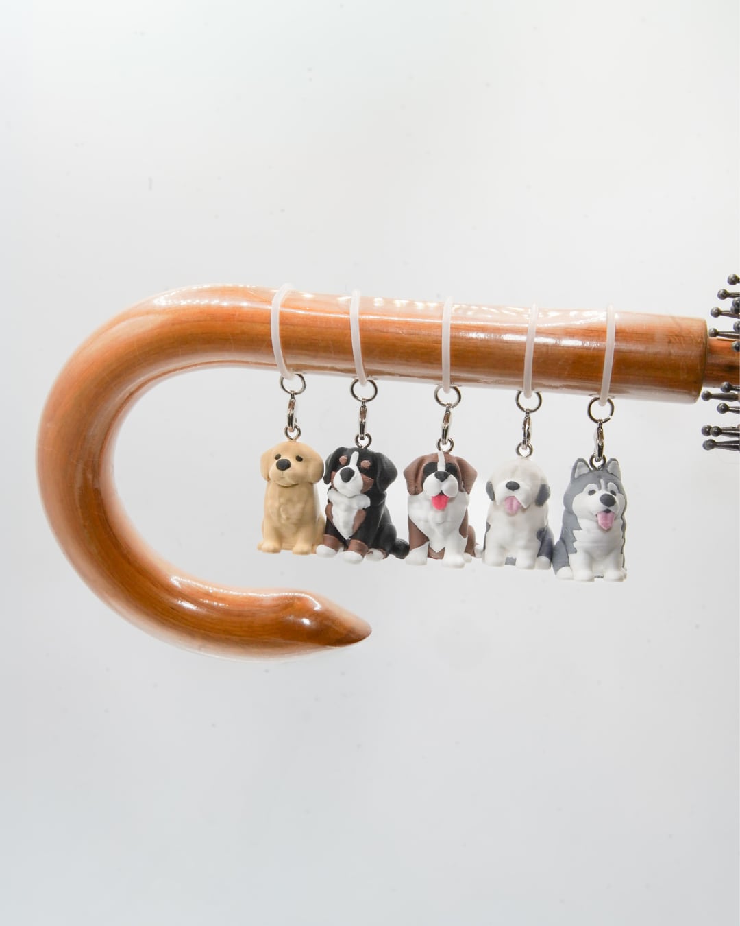 ぽってりデフォルメワンコを傘につけて自分だけのめじるしに。